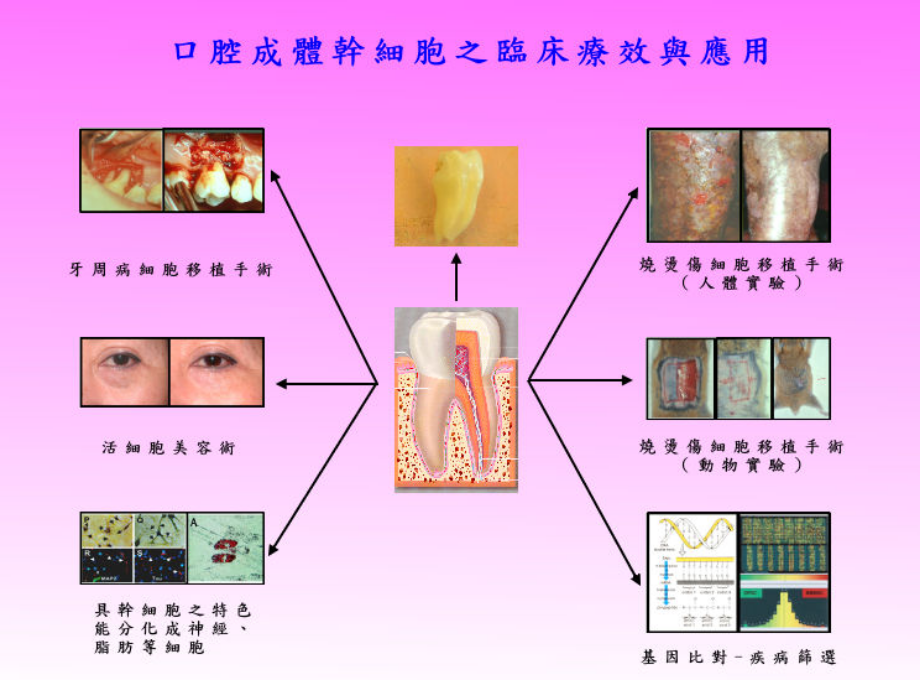利用生物晶片技術做基因比對,在牙髓腔幹細胞與骨髓幹細胞基因序列中,至少已知有4400個基因相似,未來將建立疾病之基因圖譜,用於診斷及預測疾病。