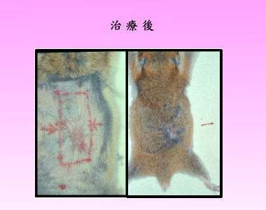 利用自體活細胞 (牙齦細胞) 移植於燒燙傷之背部上皮組織,其傷口復原快速,不僅重新生長背部之鼠毛,而且背部皮膚傷口形成細微疤痕組織。