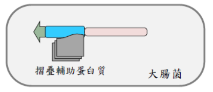 以大腸菌生產重組蛋白質時,J-區塊會和細胞內的輔助蛋白結合, 促進X-多胜肽摺疊成正確具功能的構型。