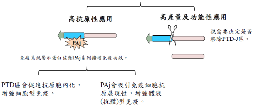 配合PTD-J-X專利之專用PAj佐劑:小鼠、兔子、豬、犬、貓、人。